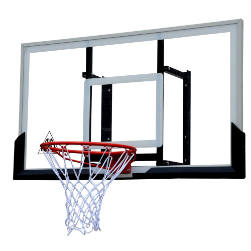 Баскетбольный щит BOARD50A размером 127 х 80 см со спортивным кольцом диаметром 45 см и прочной всепогодной нейлоновой сеткой.