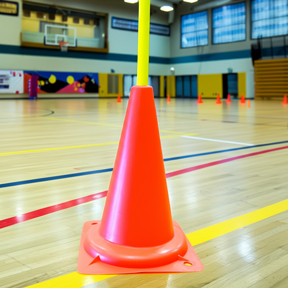 Стойки для обводки – это эффективный инструмент для тренировок, состоящий из конусообразного основания высотой 35 см и мягкой палки из ППЭ, достигающей 170 см.