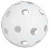 Мяч для флорбола белого цвета, выполненный из прочного пластика, весом 23 грамма и диаметром 72 мм.