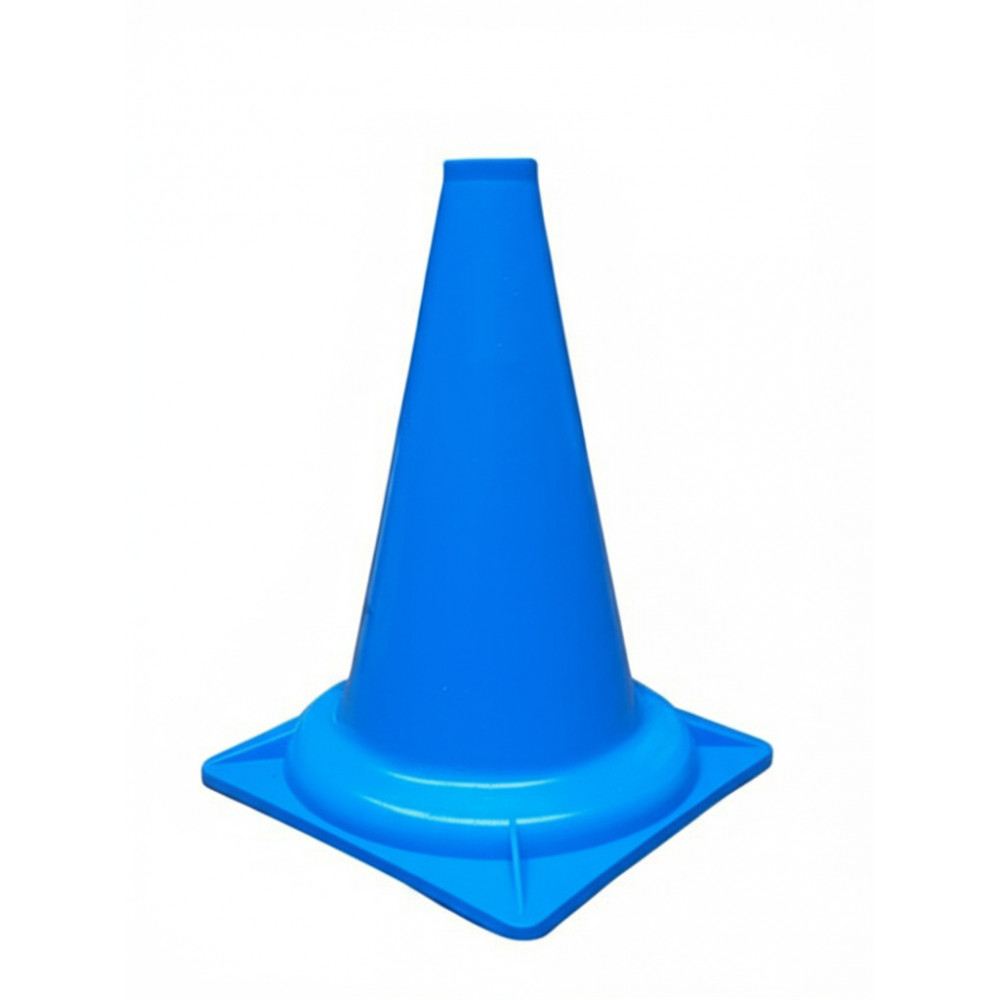 Пластиковый твёрдый конус синего цвета, высотой 32 см, идеально подходит для тренировки и разметки пространства на спортивных площадках.