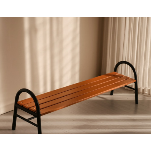 Каркас данной скамейки изготовлен из металлического профиля, обработанного порошковой краской. Сидение выполнено из качественного хвойного дерева с гладкой отшлифованной поверхностью, что обеспечивает комфорт при использовании. Особенности конструкции: