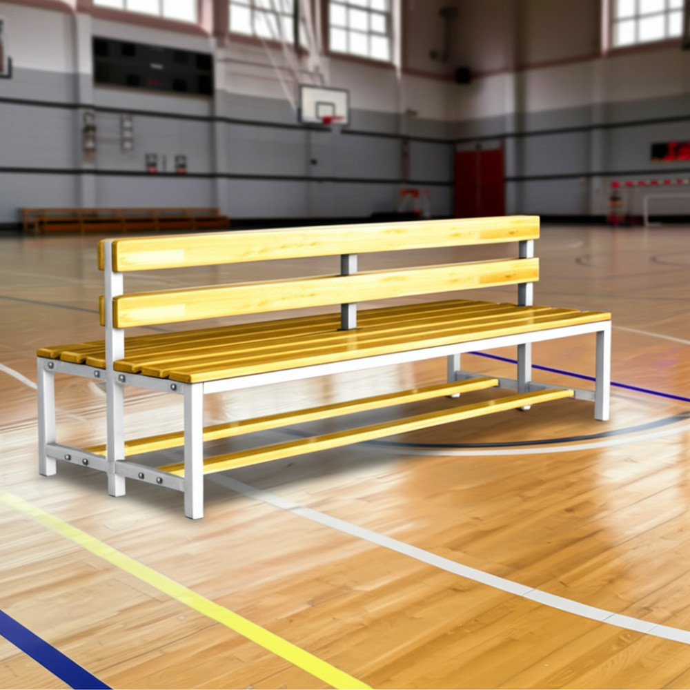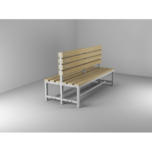 Скамейка для раздевалки двусторонняя размером 850х2000х630 мм, предназначенная для установки в школах, спортивных комплексах и фитнес-центрах.