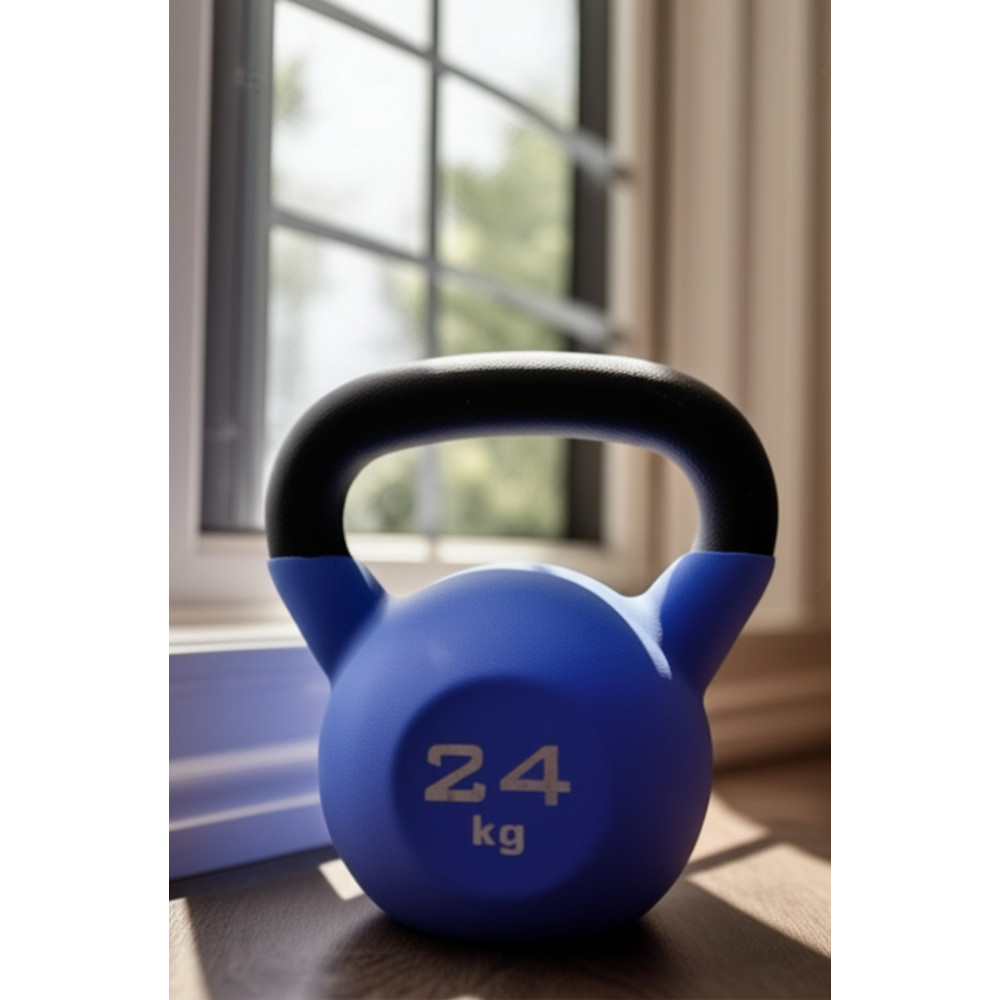 Гиря для кроссфит обрезиненная весом 24 кг с широкой рукояткой, обеспечивающей надежный хват.