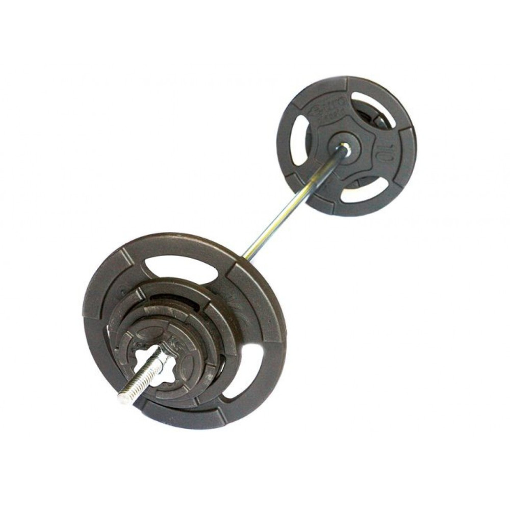 Штанга состоит из высококачественного хромированного грифа и наборов дисков с различным весом. Она идеально подходит как для начинающих спортсменов, так и для профессионалов, позволяя легко настраивать вес для выполнения различных упражнений.